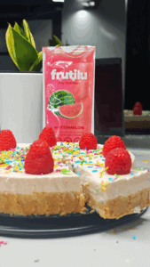 It’s the perfect combination of a crunchy biscuit base and a fluffy, airy cream made from whipped cream, skyr, and our Frutilu Watermelon instant drink, which adds that fresh, fruity touch.