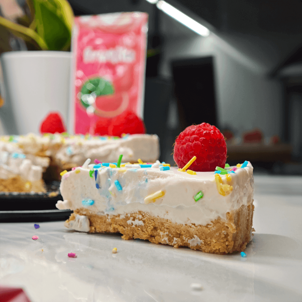 It’s the perfect combination of a crunchy biscuit base and a fluffy, airy cream made from whipped cream, skyr, and our Frutilu Watermelon instant drink, which adds that fresh, fruity touch.