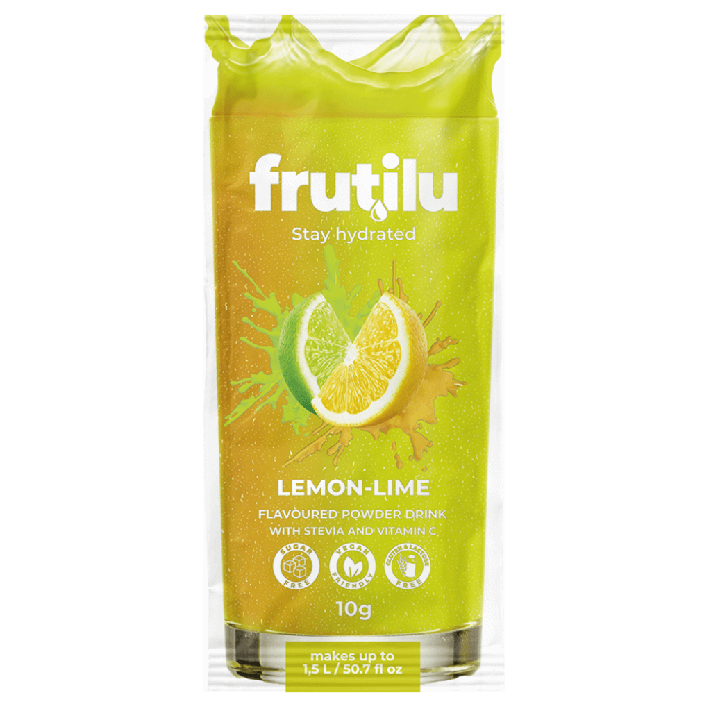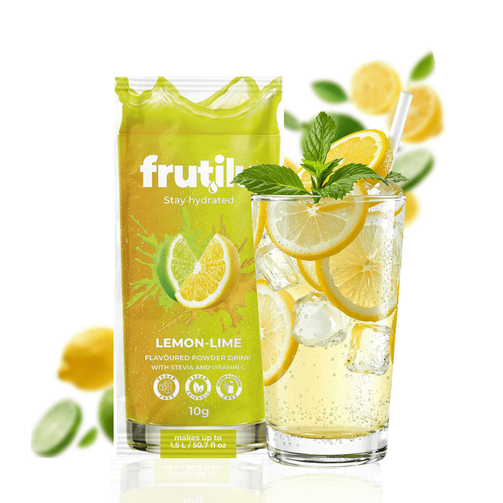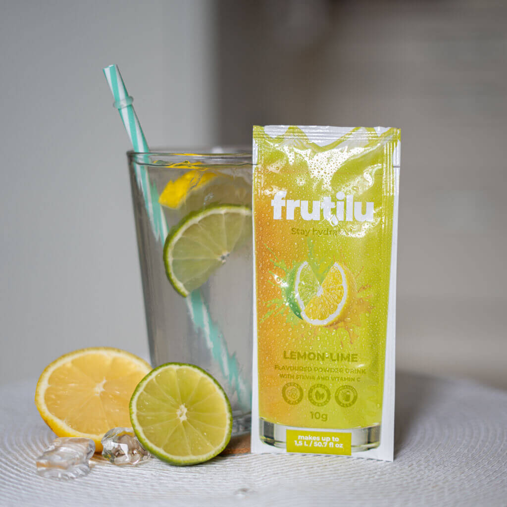 Frutilu instant powdered drink with Lemon & Lime flavor.