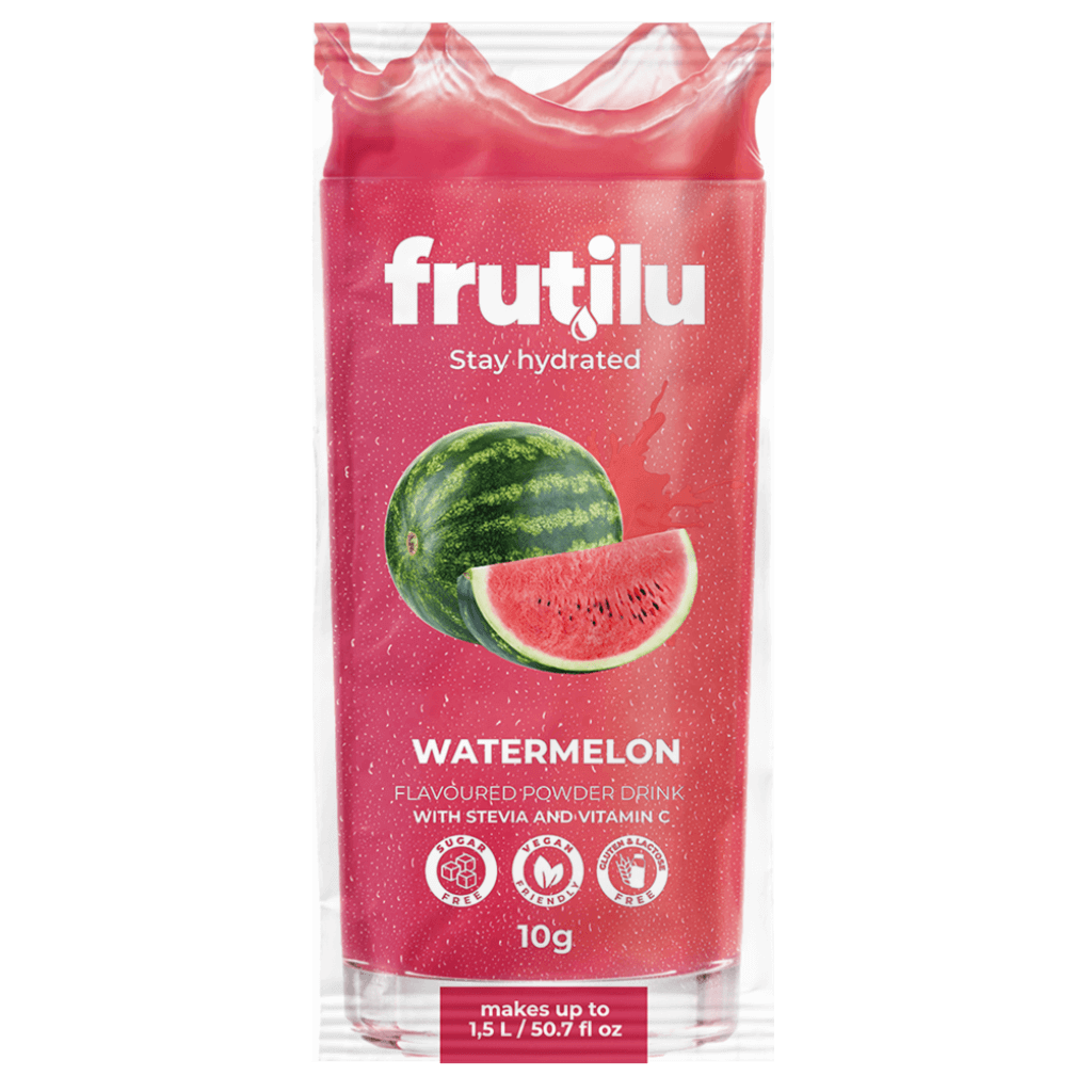 Frutilu instant powdered drink with Watermelon flavor.