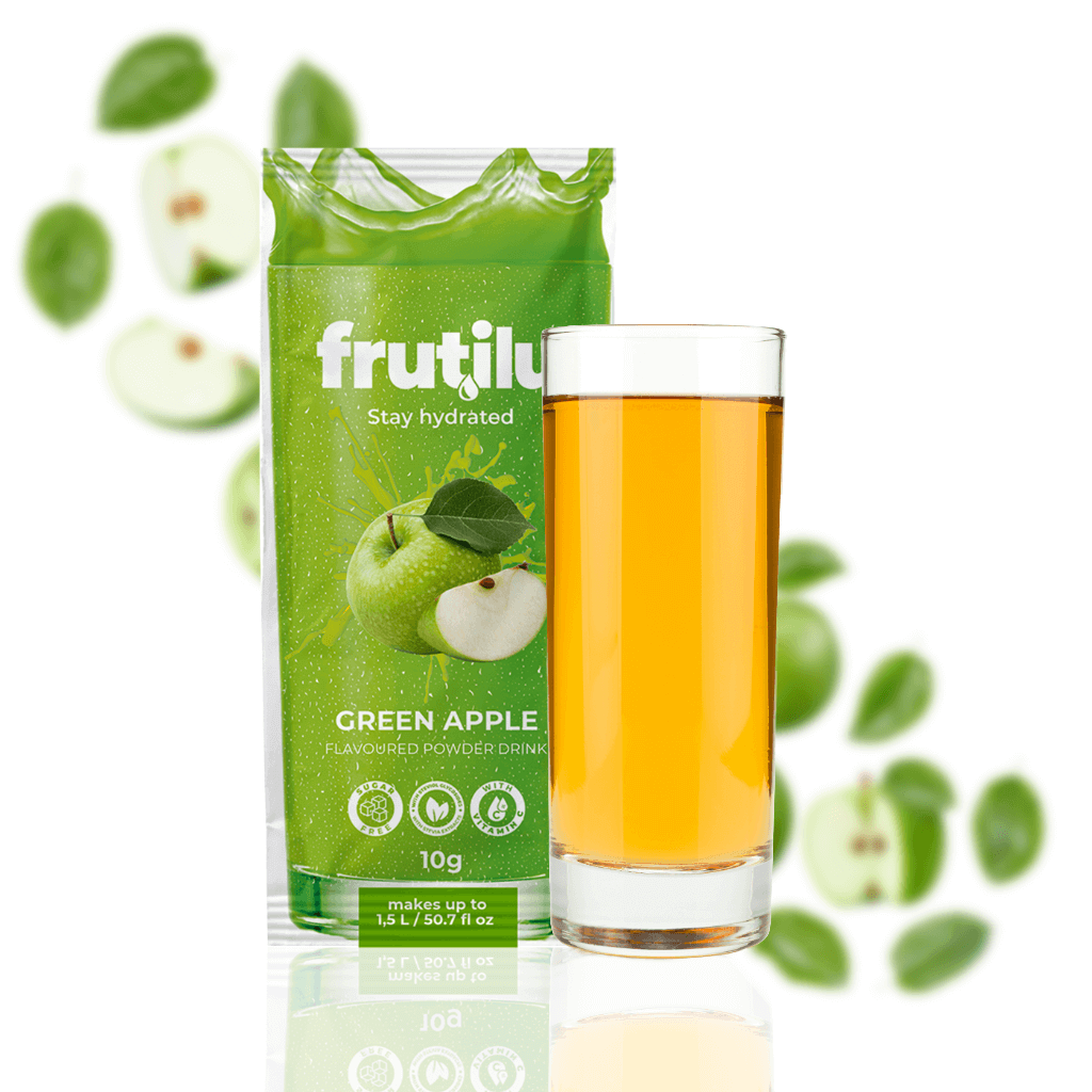 Bevanda istantanea in polvere Frutilu al gusto di mela verde.