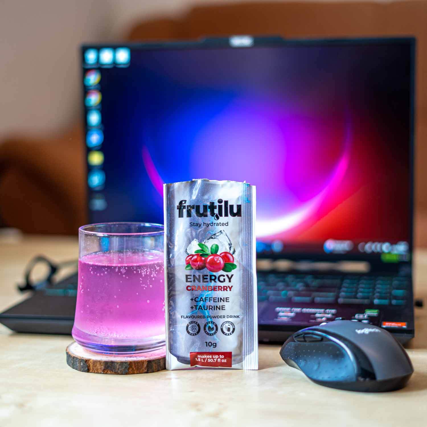Frutilu ENERGY instant napitek z okusom brusnice. Frutilu Energy vsebuje tavrin in kofein, zato NI PRIMEREN ZA OTROKE, NOSEČNICE, DOJEČE MATERE IN LJUDI Z OBČUTLJIVOSTJO NA KOFEIN.